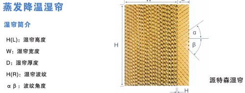 派特森湿帘,具有效率高、耐腐蚀、抗霉变、使用寿命长等特点,其自然吸水能力为60-70mm/分钟或 200mm/1.5h,降温效率高达80%以上。